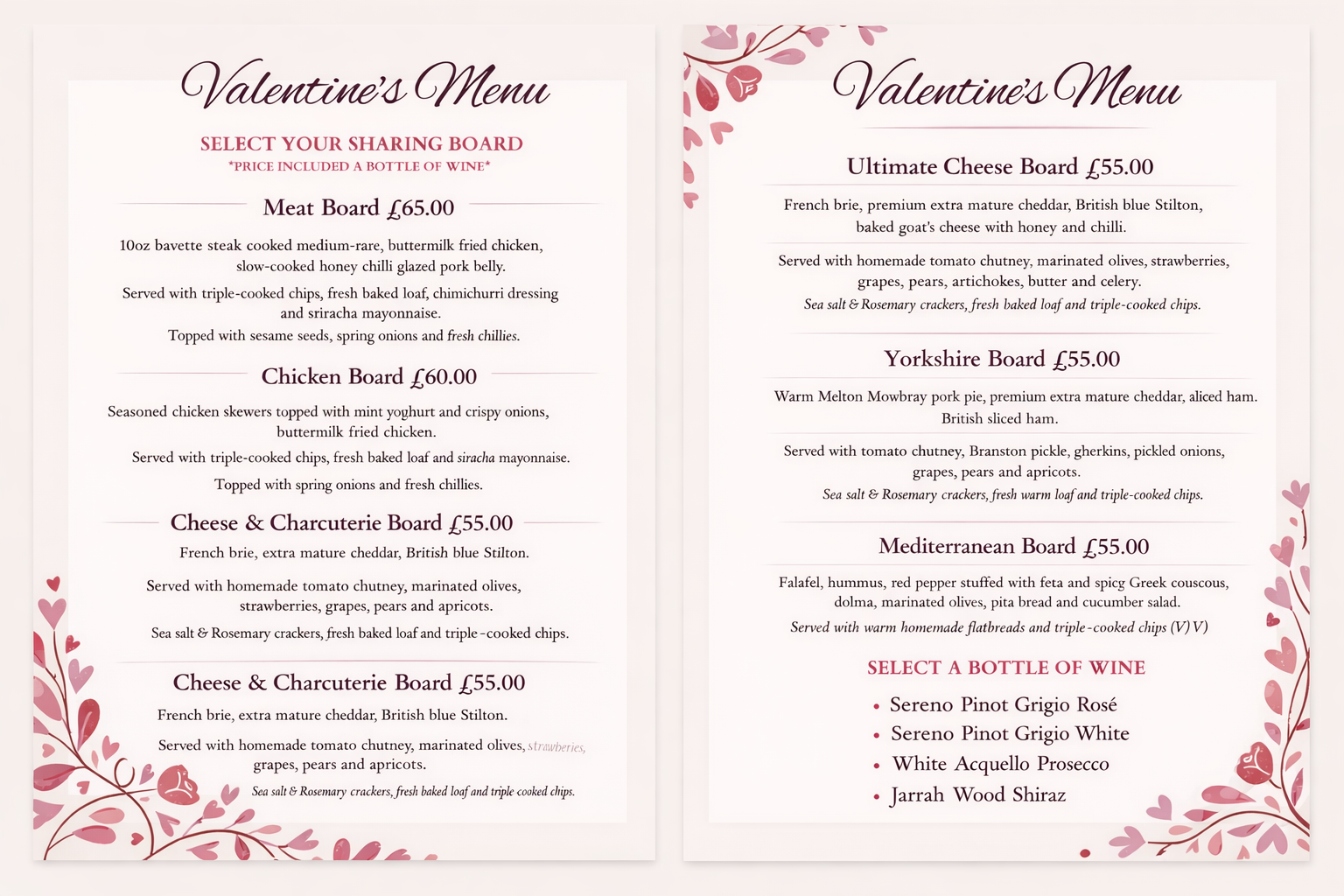 Valentine’s Sharing Boards & Wine for Two